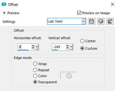 Pinte a seleção com a cor do foreground Select none 21. Layers / Duplicate Effects / Image Effects / Offset 0/-249 ==0/-249