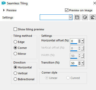 10. Image - Resize; 75% - all layers desmarcado 11. Effects - Image Effects - Seamless Tiling
