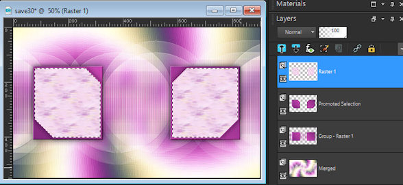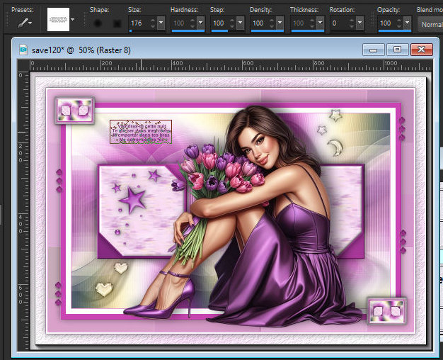 95. Coloque a cor #ca46b2 no foreground 96. Copie o tube [Albane-deco02] e cole como nova layer 97. Não precisa mover 98. Selections - Select all 99. Selections - Float 100. Selections - defloat 101. Adicione nova layer 102. Pinte com a cor do foreground 103. Effects - Plugins - Eye Candy 5: Impact - Glass - igual anterior
