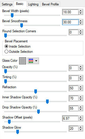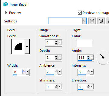42. Ative a layer superior - Raster 1 43. Effects - 3D Effects - Inner Bevel