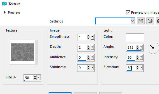 73. Image - Add borders - 45px - branco 74. Selecione essa borda com a Magic Wand - Tolerance/feather=0 75. Pinte a seleção com o gradiente 76. Mantenha a seleção 77. Effects - Texture Effects - Texture - [Texture: Corel_15_022.bmp (hutch lump)]