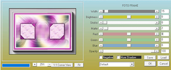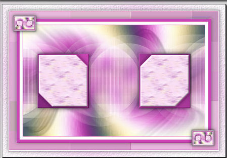 49. Merge all 50. Coloque a cor branca no foreground 51. Image - Add borders - 1px - #ca46b2 52. Image - Add borders - 15px - branco 53. Image - Add borders - 1px - #ca46b2 54. Copie a layer (ficará na memória) 55. Selections - Select all 56. Image - Add borders - 35px - qualquer cor 57. Selections - Invert 58. Mantenha a seleção 59. Layers - Promote background layer 60. Cole na seleção a imagem que está na memória 61. Effects - Distortion Effects - Pixelate