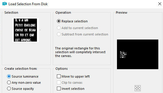 Continue na layer superior Selections - Load selection from disk - Selection [sel_01_quelque_chose_vir] >>>
