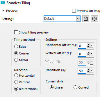 3 Layers - Duplicate Merge down Effects - Edge Effects - Dilate Drop shadow: 0 0 100 50 cor 3 4 Adicione uma nova layer Selections - Select all Copie o tube misted e cole na seleção Select none Effects - Image Effects - Seamless Tiling - Default